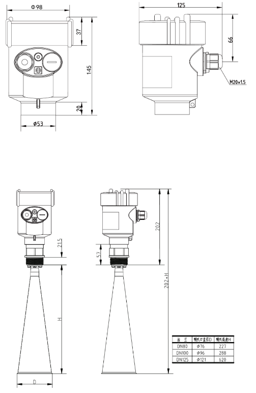 天線形式/材料  B 喇叭天線Φ76mm/不銹鋼304