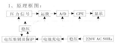 a壓力:被測介質(zhì)從引壓管施加壓力于固態(tài)(硅膜片)傳感器上,當壓力變化時,擴散硅膜片的電阻地壓力電阻效應(yīng)下發(fā)生變化,這個變化作為電信號被檢測出來,通過線路將其轉(zhuǎn)換為與壓力成比例關(guān)系的電壓信號,該信號經(jīng)模擬——數(shù)字轉(zhuǎn)換器轉(zhuǎn)換為數(shù)字信號,經(jīng)微處理器處理后,在LCD顯示器上顯示出被檢介質(zhì)壓力值的數(shù)字。