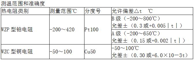 | 熱電阻類別 | 測溫范圍℃ | 分度號 | 允許偏差△t℃ |